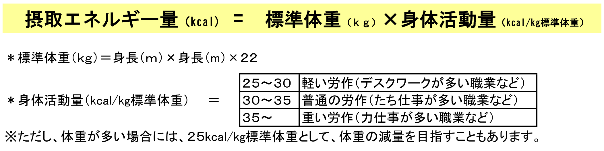 適正な摂取エネルギー量は、年齢、性別、身長、体重、活動量、血糖値、合併症の有無などによって、ひとりひとり違います。食事量は多くても、少なくてもよいものではありません。 お身体に合った食事量を摂る事が大切です。